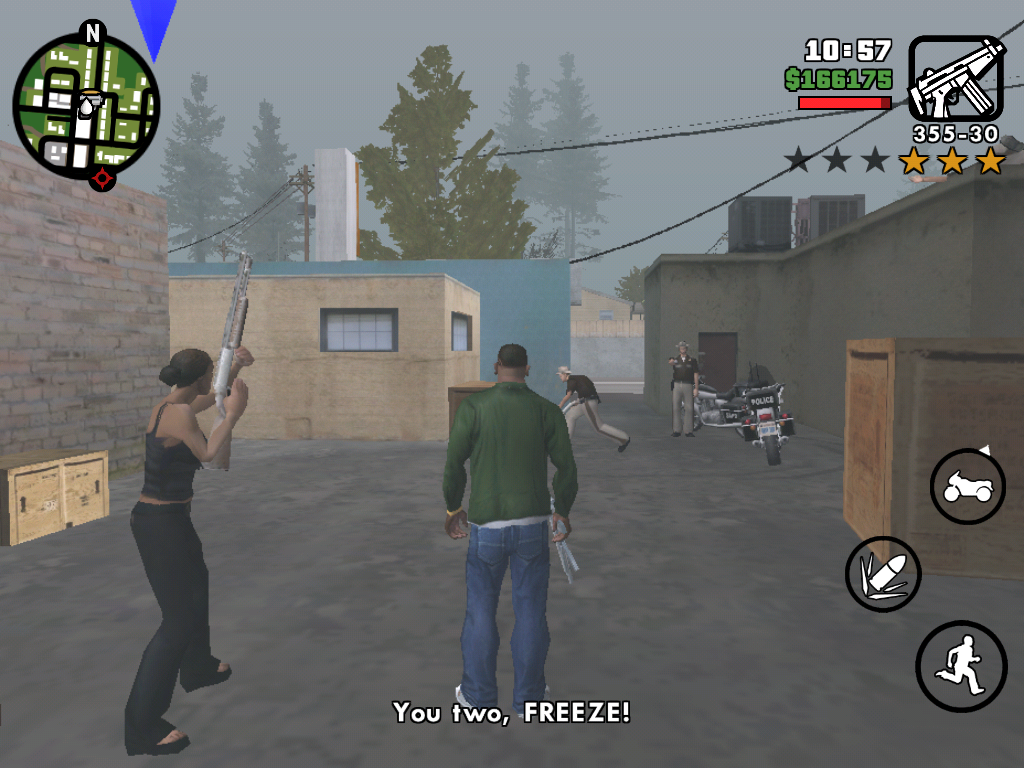 Catalina falls off the bike back in town and needs you to rescue her. Drive up to her on the bike and she’ll jump on and you can head back the short drive to her hideout. Just keep moving to stay clear of the cops and go off road.